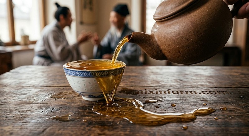 Мастер поставил перед профессором фарфоровую чашку и начал медленно наливать в нее ароматный горячий чай. Чашка быстро наполнилась до краев, но старец не останавливался. Он продолжал лить напиток, который уже переливался через края, заливая стол и стекая на пол.